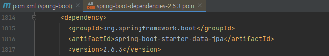 - pom.xml내에 dependency는 버전 정보를 적지 않아도 Spring Boot가 제공하는 의존성 관리에 의해 알아서 가져옴