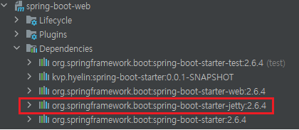 정상적으로 변경되었다면 dependency에 jetty가 보여야 하고