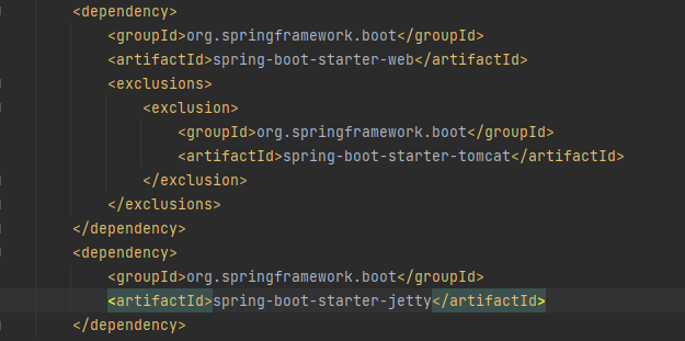 pom.xml에서 exclusion으로 tomcat을 제외시켜주고, 사용하려는 내장서버 dependency 추가