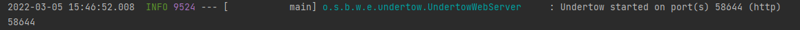 다음과 같이 Undertow가 실행되었다는 문구가 출력되고, 바로 다음에 포트번호가 출력되는 것을 확인할 수있음