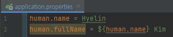 ex) properties 파일 내에 human.age = 100 이라고 정의했다면,