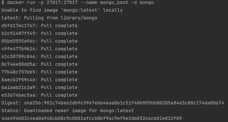 docker run -p 27017:27017 --name mongo_boot -d mongo