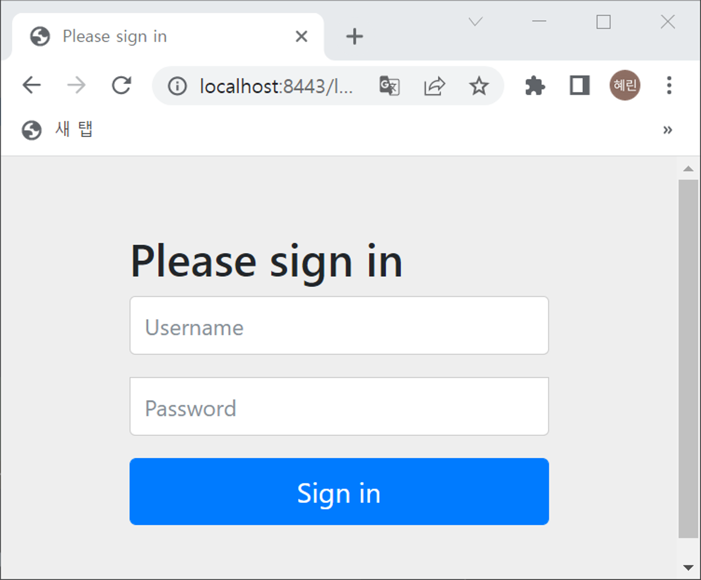 루트를 요청해도 인증정보가 없기 때문에 Spring Security에서 만든 로그인 폼 페이지가 보여짐