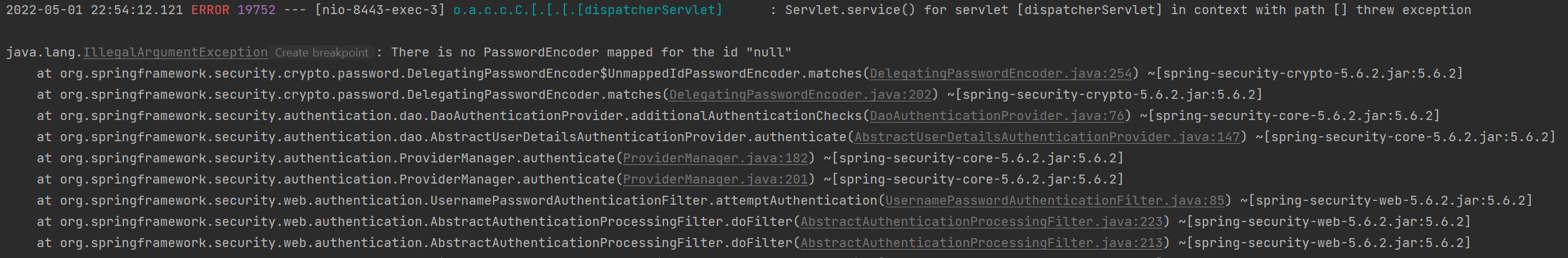 -> java.lang.IllegalArgumentException: There is no PasswordEncoder mapped for the id "null"