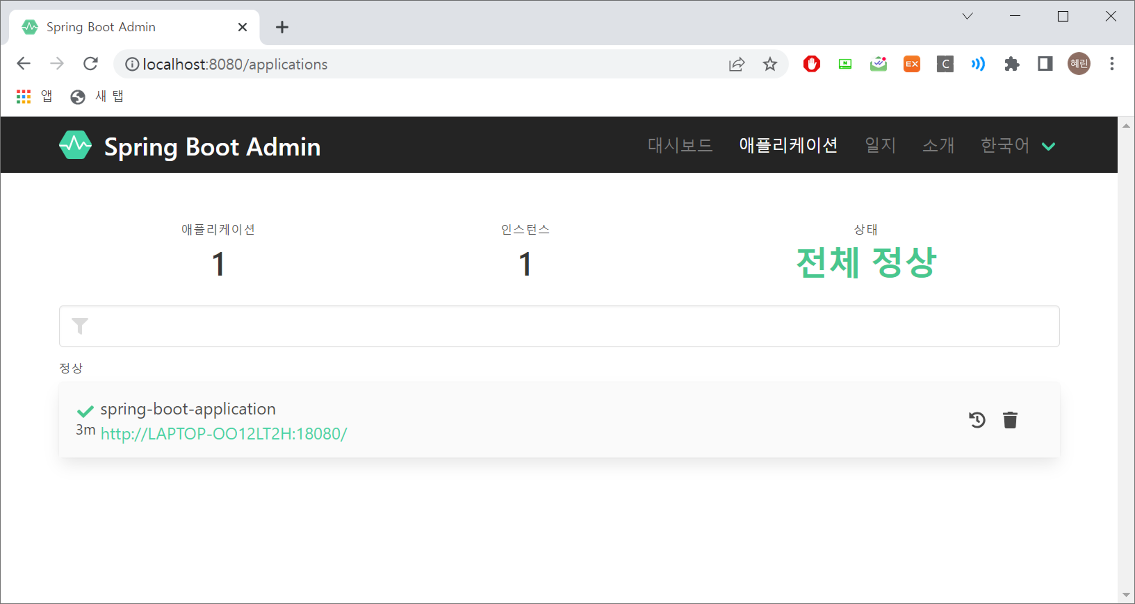 - application에 @EnableAdminServer 어노테이션 추가