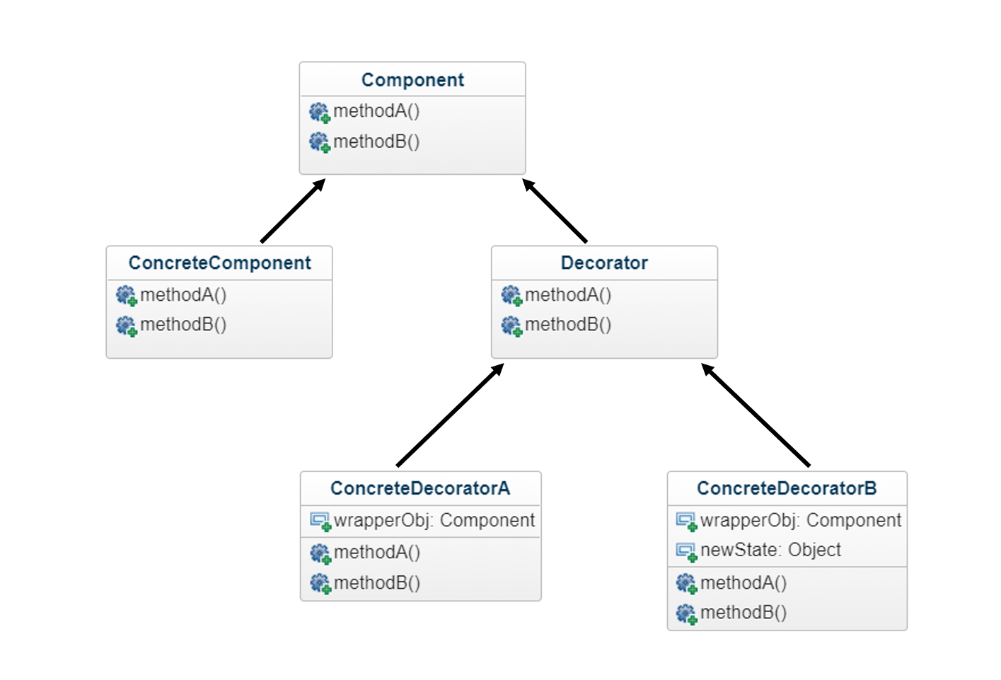 - ConcreteComponent에는 Component가 가지는 행동 외에 새로운 행동을 동적으로 추가할 수 있다.
