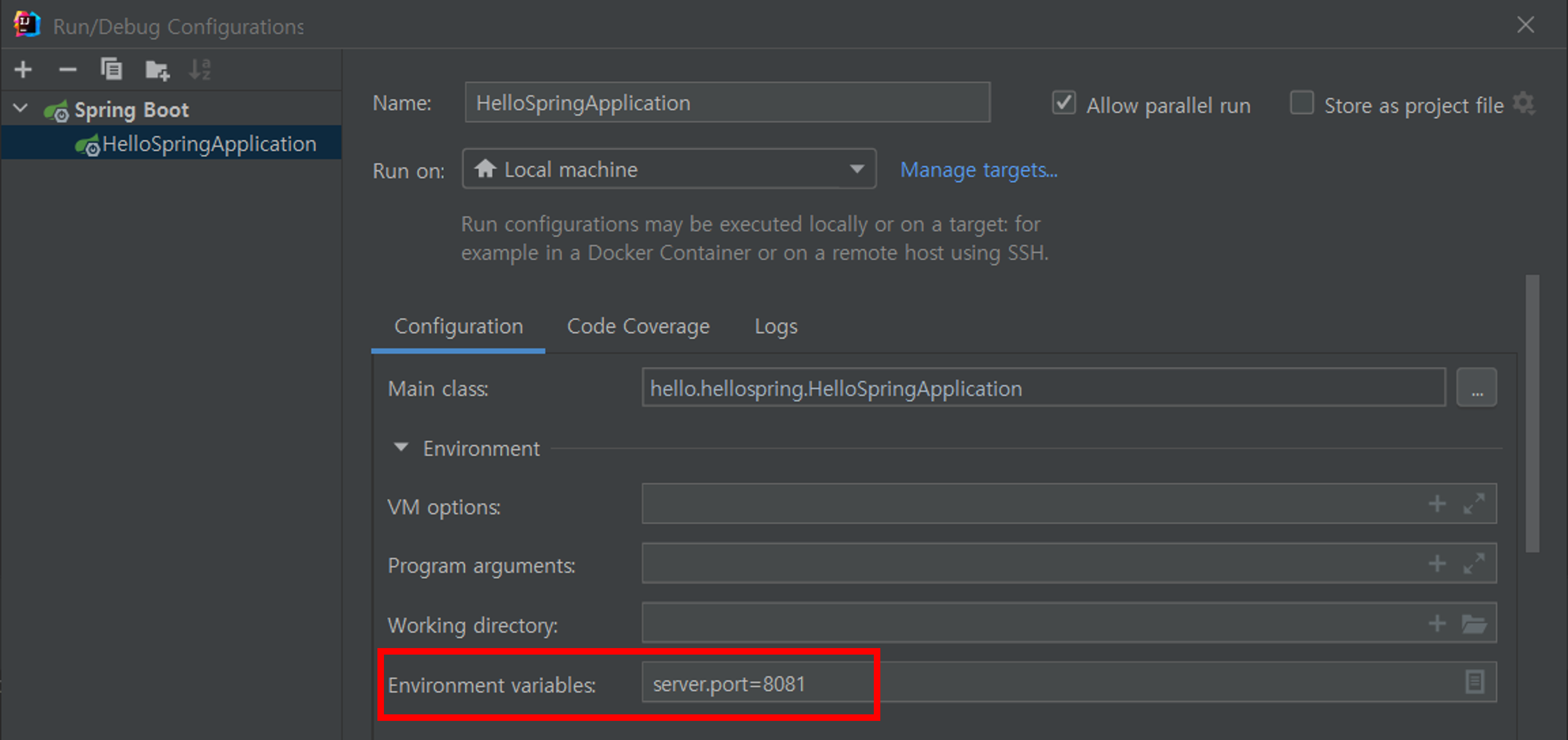 (또는 IntelliJ 단축키 shift 두번 입력 후 Edit Configurations 선택)