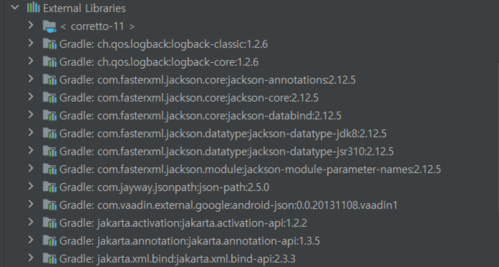 실제 External Libraries에 보면 직접 추가하지 않은 라이브러리들이 많음.